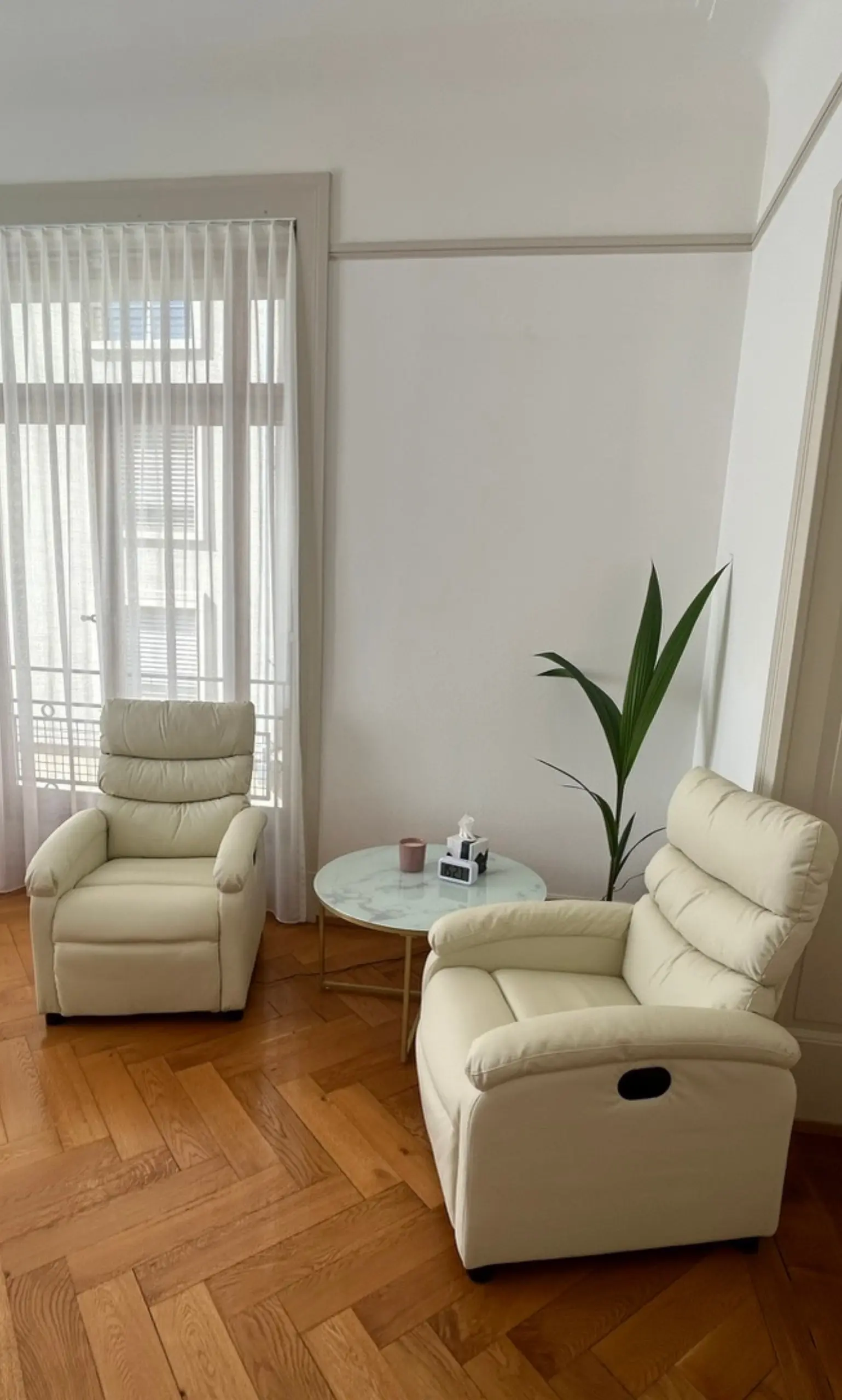 L’enjeu de ce projet était le délai : un mois pour concevoir le projet et m’occuper de son aménagement. Entre vert et or, ce cabinet de psychothérapeutes invite au bien-être. Le comptoir d’accueil, conçu sur mesure, permet de délimiter la salle d’attente et l’espace secrétariat et chaque espace a été étudié pour être accessible aux personnes à mobilité réduite.